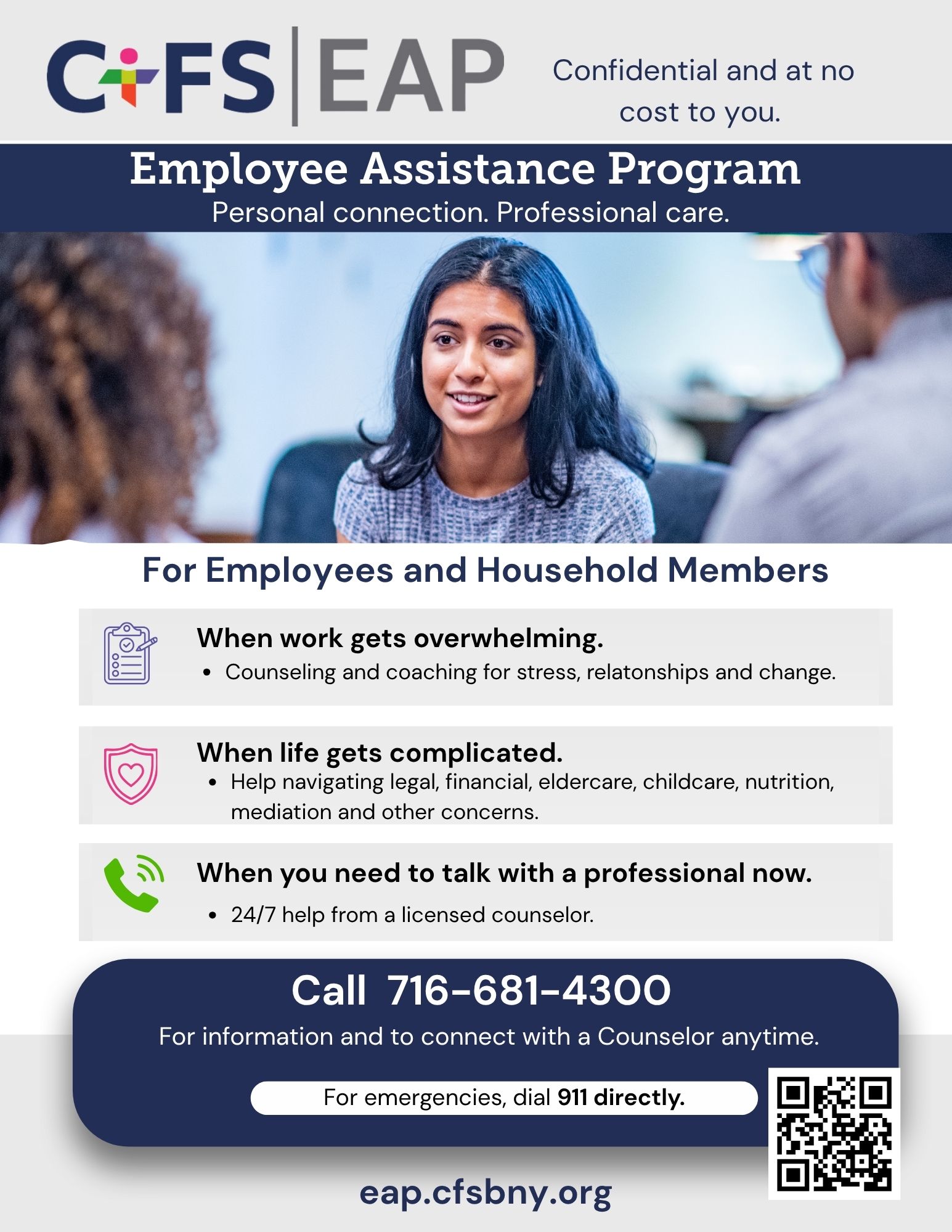 2. Share the Orientation Video below to staff routinely or post on an internal message board. Also, when you have a group of people who are gathered for any reason, contact us and request that and EAP staff member present a more detailed orientation “live” via Zoom or in-person. Email or call to request: eap@cfsbny.org, 716-681-4300.
